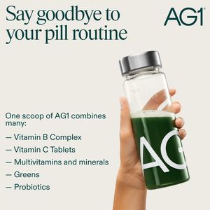 This template wins by converting a familiar supplement desire into a clearer, easier job-to-be-done: “stop juggling pills.” That convenience trigger reduces friction for solution-aware shoppers who already believe in daily supplementation but struggle with compliance. The large, high-contrast headline frames the problem in one glance, while the short bullet list provides fast credibility cues (vitamins, minerals, greens, probiotics) without overwhelming detail—ideal for TOF awareness where attention is scarce. The hand-held bottle shot adds realism and aspiration: it shows the product as a ready-made ritual, not another container in the cabinet. The minimal layout and premium typography signal trust and quality, helping justify a higher-priced greens product while keeping the message simple enough for social scroll environments.