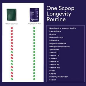 Designed for health-conscious adults (often 30–60) interested in longevity, performance, and simplifying supplement routines. They compare labels, want “all-in-one” solutions, and respond to clear proof points like checkmark comparisons and comprehensive ingredient lists.