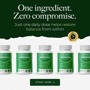 The creative wins by turning “simplicity” into a premium promise: the large serif headline anchors a single-ingredient USP, leveraging the purity trigger for label-reading shoppers. The dark green palette and paper-tear divider signal natural, trustworthy wellness while keeping the layout clean enough for fast feed scanning. In a mid‑funnel consideration context, the gold 90‑day money-back badge functions as risk-reversal—addressing the buyer’s biggest objection (will it work for me?) without requiring dense scientific copy. Repeating the bottle across the bottom builds recognition and perceived legitimacy (it looks like a real, established product line). The CTA button (“Start Here”) fits solution‑aware audiences who already want a supplement but need a confident, low-friction next step to choose this brand.
