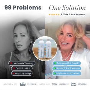 Funziona perché unisce due leve potentissime per un pubblico “solution-aware”: trasformazione e riprova sociale. Il lato “prima” in bianco e nero mette a fuoco i pain point (diradamento, crespo, prurito/secchezza), mentre il lato “dopo” più luminoso risponde con una checklist di benefici facile da leggere, riducendo lo sforzo mentale e rendendo la promessa più concreta. Il cerchio centrale con i flaconi chiarisce l’attribuzione: il cambiamento è collegato subito al set shampoo+balsamo. Stelle, numero elevato di recensioni e fascia “as seen in” aggiungono validazione esterna e abbassano il rischio percepito—fondamentale nella fase di considerazione, quando l’utente confronta alternative e cerca segnali di affidabilità. La struttura è “scan-friendly”: headline grande, contrasto netto, icone X/spunta e prove vicino alle affermazioni per aumentare fiducia e memorabilità.