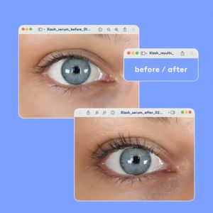 Questo template quadrato per il settore beauty è pensato per promuovere un siero ciglia puntando tutto su una trasformazione immediata e facile da verificare. Il layout mostra due macro foto dell’occh...