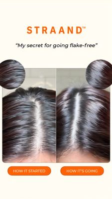 Questo template 9:16 in stile Story è pensato per promuovere un siero antiforfora o un trattamento specifico per il cuoio capelluto, con promessa di risultati visibili. La parte alta è pulita, su fond...