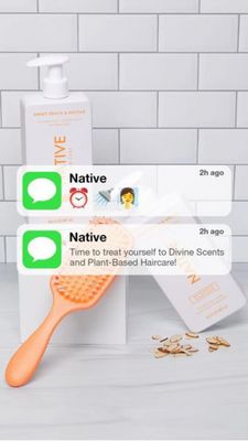 Questo template 9:16 in formato Story è pensato per promuovere una routine haircare vegetale con un’estetica pulita da “mensola del bagno”. Lo sfondo a piastrelle bianche tipo subway e il piano in legno chiaro creano subito un contesto fresco e quotidiano. Due flaconi bianchi con dispenser (uno frontale, uno inclinato) incorniciano una spazzola districante arancione e piccoli elementi botanici sparsi. Sopra, compaiono due notifiche stile iOS: è qui che vive il messaggio, con un effetto “promemoria personale” più credibile di una classica headline, perfetto per la fase TOF e per utenti ancora inconsapevoli. La leva è aspirazionale e sensoriale: il bianco comunica delicatezza e formula “pulita”, mentre l’accento pesca/arancio richiama profumo e morbidezza. La curiosità nasce dal formato chat/notification e dalla prima riga con emoji, che spinge a leggere la seconda notifica. Personalizzalo cambiando il nome mittente, le etichette dei prodotti e il colore accento in linea con il pack. Inserisci un benefit breve nella seconda notifica (es. “lucentezza senza solfati”) mantenendo l’ambientazione bagno per massima coerenza.