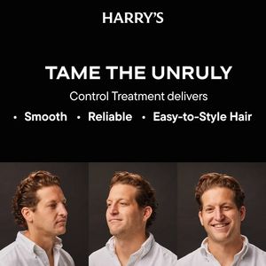 Questo template quadrato è pensato per promuovere un trattamento hair control da uomo contro capelli crespi e ingestibili. Il design punta su un header nero a tutta larghezza con testo bianco ad altis...