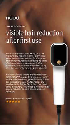 Questo layout funziona perché unisce una promessa forte e immediata (“riduzione visibile dei peli dopo il primo utilizzo”) a una prova ad alta credibilità: una recensione lunga in prima persona. Per un pubblico già consapevole dell’IPL e in fase di considerazione, i dettagli tecnici non bastano a sciogliere le paure (irritazioni, acquisto sbagliato, uso complicato). La testimonianza anticipa le obiezioni con elementi concreti: meno tempo perso, meno fastidio sulla pelle, istruzioni chiare, risultati in circa due settimane. Le stelline e il “10/10” danno fiducia a colpo d’occhio, mentre lo scontorno del prodotto rende chiaro “chi” mantiene la promessa. Lo sfondo caldo color pelle rafforza l’associazione alla categoria e rende il messaggio più umano: best practice per i beauty device dove sicurezza percepita ed efficacia guidano la conversione.