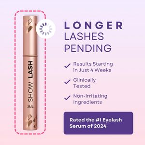 Questo template quadrato è pensato per promuovere un siero per la crescita delle ciglia e sfrutta l’idea “in arrivo” per creare curiosità, senza rinunciare a segnali forti di affidabilità. A sinistra trovi un packshot verticale del flacone color oro rosa, incorniciato da un riquadro arrotondato tratteggiato fucsia che valorizza il prodotto e lo rende immediatamente “premium”. A destra, una headline grande in maiuscolo viola (“Longer Lashes Pending”) comunica la promessa in modo diretto, seguita da una lista ordinata con spunte: risultati in 4 settimane, test clinici e ingredienti non irritanti. In basso, un box viola con angoli arrotondati ospita una claim da classifica (“Rated the #1 Eyelash Serum of 2024”), che funziona come riprova e riduce i dubbi tipici della fase di valutazione. Lo sfondo lilla pastello mantiene il look pulito e beauty-oriented, ideale per utenti solution-aware che stanno confrontando alternative. È facile personalizzarlo sostituendo il packshot, aggiornando la tempistica in base alle evidenze e trasformando il box finale in premio, nota dermatologica o bestseller retailer.