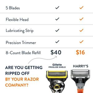 Questo template funziona perché unisce in modo efficace i trigger di equità e risparmio in un confronto leggibile a colpo d’occhio. La checklist iniziale comunica parità di caratteristiche e neutralizza l’obiezione tipica (“se costa meno sarà peggio”). Subito dopo entra in gioco l’ancoraggio: $40 scuro contro $16 arancione ad alto contrasto, che rende il risparmio tangibile e memorabile. La domanda provocatoria sposta la percezione della categoria su un tema di “prezzi gonfiati”, generando una leggera indignazione che accelera la decisione. È perfetto per il mid-funnel con pubblico solution-aware: persone che già usano rasoi a cartuccia e stanno valutando alternative, quindi cercano una motivazione concreta per cambiare. In linea con le best practice, mostra i prodotti affiancati e concentra l’attenzione su un unico numero chiave.