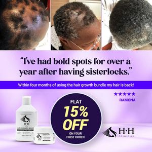 Questo template quadrato è pensato per promuovere un bundle per la ricrescita dei capelli, ideale per chi soffre di diradamento e chiazze visibili sul cuoio capelluto. In alto, tre foto in sequenza (p...
