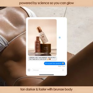 Funziona perché vende prima il risultato e poi il prodotto. Lo scatto full-bleed di pelle illuminata comunica subito aspirazione, mentre la frase “powered by science” abbassa le difese su un tema dove l’utente teme striature, effetto arancione o tempi lunghi. La card in stile iMessage introduce una riprova sociale ad alta fiducia: sembra un consiglio reale, non un claim di brand. La promessa specifica (“più scura in metà tempo”) rende la trasformazione chiara anche per un pubblico non consapevole, quindi è perfetta in top-of-funnel. Rispetta best practice importanti: gerarchia leggibile (headline sopra, prova al centro, firma brand sotto), prodotto centrato per fissare la memoria visiva e color grading bronzo che rafforza l’idea di glow intenso.