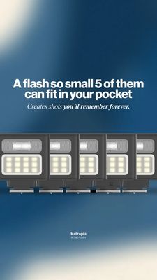 Questo template 9:16 in formato Story è pensato per promuovere un flash fotografico retro super compatto, ideale per chi crea contenuti e vuole scatti migliori in condizioni di luce difficile senza po...