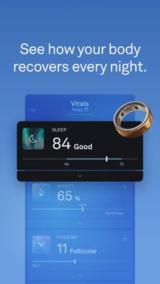 Questo template 9:16 in stile Story è pensato per promuovere un anello smart per il monitoraggio del sonno o una funzione di app wearable legata a recovery e benessere. Lo sfondo in gradiente blu crea subito un’atmosfera “notte” rassicurante, mentre il titolo grande (“See how your body recovers every night.”) mette al centro un beneficio chiaro e immediato. Al centro, le schermate dell’app sfocate fanno da contesto, ma il focus resta sulla card scura ad alto contrasto con il punteggio “SLEEP 84 Good”: un modo semplice per rendere i dati comprensibili a colpo d’occhio. A destra, il product shot dell’anello aggiunge concretezza senza appesantire il layout. A livello di strategia, lavora su curiosità e rassicurazione: promette controllo e insight sul recupero, ma il giudizio “Good” abbassa la frizione emotiva e aumenta la fiducia. È perfetto per un pubblico solution-aware in fase di considerazione, che sta confrontando dispositivi e vuole capire “cosa ci guadagno” in modo rapido. Personalizzalo sostituendo la metrica principale (HRV, readiness, fasi del sonno) e armonizzando il blu con i colori del brand mantenendo però il look pulito e credibile.