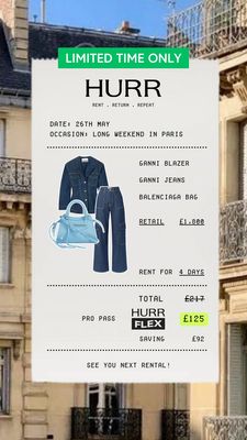 Questo template in formato Story per il fashion promuove un servizio di noleggio abiti e accessori usando un’idea creativa molto chiara: una “ricevuta” di noleggio pulita e ordinata. In alto, la fascia verde “LIMITED TIME ONLY” interrompe lo scroll e introduce un senso di urgenza. Subito sotto, il nome del brand e la promessa “Rent. Return. Repeat.” spiegano il modello in tre parole. Il corpo centrale inserisce data e occasione (es. weekend lungo a Parigi) e poi dettaglia il look completo con un collage prodotto (blazer, jeans, borsa) e il confronto con il valore retail, oltre alla durata del noleggio. La sezione prezzi mette in evidenza totale, pass/progetto e soprattutto il prezzo finale in un box giallo fluo ad alto contrasto: perfetto per l’angolo “value savings”. È ideale per TOF awareness e utenti “unaware” perché rende il noleggio immediatamente comprensibile grazie alla struttura tipo scontrino e rafforza l’aspirazione con lo sfondo lifestyle urbano. Personalizza occasione, capi, prezzi e nome del piano per campagne stagionali o partnership brand.