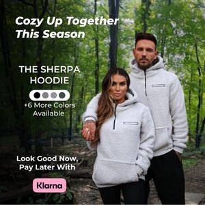 Questo template quadrato per il settore moda promuove una felpa in sherpa con una foto lifestyle di coppia, ambientata in un bosco: un contesto naturale che comunica subito calore, comfort e “stagione fredda”. La composizione è intelligente: i modelli sono a destra, mentre a sinistra c’è una colonna testuale in bianco, molto leggibile sullo sfondo più scuro degli alberi. Il claim “Cozy Up Together This Season” lavora sull’idea di complicità e outfit coordinati; subito sotto, il nome prodotto (“The Sherpa Hoodie”) rende l’offerta chiara. Il modulo con i pallini colore e la dicitura “+6 more colors available” riduce l’indecisione e aumenta la percezione di scelta. In basso, il messaggio “Look Good Now, Pay Later” con badge rosa in stile Klarna aggiunge un incentivo economico senza ricorrere a sconti: perfetto per una fase di considerazione, con pubblico già product-aware. Il template si personalizza facilmente sostituendo location, badge pagamento e palette colori mantenendo gerarchia e impatto.