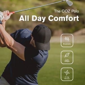Questo template quadrato è pensato per promuovere una polo tecnica da golf da uomo, sfruttando una foto lifestyle a tutta pagina con un golfista in pieno swing: un visual che comunica subito performance, outdoor e credibilità sportiva. La gerarchia è costruita per la lettura rapida: il nome prodotto (“The COZ Polo”) resta discreto, mentre il claim grande (“All Day Comfort”) mette al centro il beneficio principale. A destra, tre box con angoli arrotondati e icone lineari sintetizzano i plus del tessuto—traspirante, leggero, elasticità 4-way—trasformando caratteristiche tecniche in argomenti di scelta immediati. La palette naturale del green, unita al blu scuro del capo, crea un mood sobrio e premium; testi e icone bianchi garantiscono contrasto e chiarezza anche su mobile. A livello strategico lavora su aspirazione e comfort “da tutto il giorno”, perfetto per una fase di considerazione: l’utente conosce già la soluzione e confronta dettagli e materiali. È facile da personalizzare cambiando scatto, claim e i tre benefit con le tecnologie del brand o una capsule stagionale.