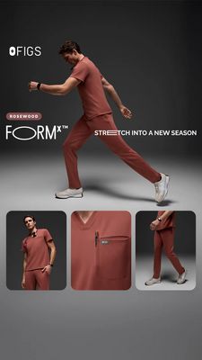 Questo visual funziona perché unisce aspirazione e promessa di comfort in un colpo d’occhio. La posa “in movimento” dimostra visivamente stretch e mobilità, elementi cruciali per chi indossa scrub tutto il giorno, senza appesantire con tecnicismi. Lo sfondo carbone, neutro e pulito, fa risaltare il rosewood come upgrade di stagione, attivando curiosità e desiderio di rinnovamento. Nel top-of-funnel, con pubblico “unaware”, il messaggio resta essenziale e orientato al beneficio (“Stretch into a new season”): invita a scoprire la linea invece di forzare l’acquisto con prezzo o specifiche. La strip a tre riquadri lavora come rassicurazione rapida: look completo per il fit, macro per la funzionalità (zip/tasca), crop per la silhouette. È una best practice per l’abbigliamento: contesto + dettagli nello stesso annuncio, riducendo attrito e dubbi.