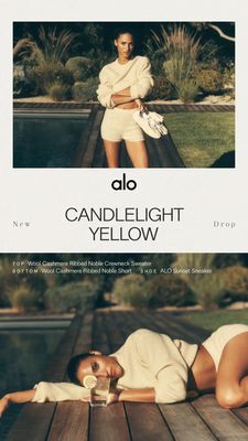 Questo template 9:16 in formato Story è pensato per lanciare un “new drop” athleisure con un taglio editoriale, caldo e rilassato. La creatività usa due foto lifestyle impilate: in alto una modella in completo knit chiaro a bordo piscina, in basso una posa più soft su una pedana in legno. Una fascia centrale color avorio separa le immagini e ospita logo e headline “CANDLELIGHT YELLOW”, dando subito un’impressione premium. La tipografia è minimale e molto fashion: titolo in maiuscolo, parole laterali distanziate (“New” e “Drop”) e una riga di micro-testo che elenca capi e sneaker, perfetta per far capire l’outfit in pochi secondi. A livello strategico lavora in TOF: punta su aspirazione, estetica e novità, senza bisogno di sconti. La luce dorata e la palette neutra comunicano comfort elevato e atmosfera di stagione, ideale per chi acquista per stile e mood. Per personalizzarlo, sostituisci lo shooting con il tuo, rinomina il colorway/tema e aggiorna i callout dei prodotti con i tuoi best-seller.