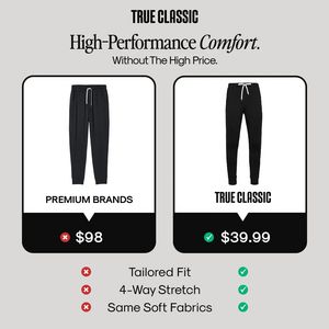 Questo template funziona perché sfrutta confronto di valore e praticità: leve molto forti per chi compra menswear e ha già chiaro il bisogno (joggers comodi), ma sta scegliendo il brand. Il confronto affiancato “Premium Brands” vs il tuo marchio incornicia la decisione in modo razionale, mentre X rossa e spunta verde abbassano lo sforzo mentale e rendono il risparmio immediato. In una fase di considerazione (MOF), il layout anticipa l’obiezione più comune (“Sarà davvero allo stesso livello?”) e la gestisce con una checklist corta di caratteristiche che comunica qualità senza blocchi di testo. Palette neutra e tipografia dal taglio editoriale aumentano la percezione di affidabilità e valore, perfetta per utenti solution-aware che preferiscono prove semplici e confrontabili rispetto a promesse urlate.