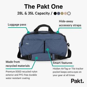 Questo template quadrato in stile “scheda prodotto” è pensato per promuovere una borsa da viaggio/cabin bag mettendo in primo piano le caratteristiche che contano davvero. Al centro c’è una foto ampia del borsone su sfondo chiaro, pulito, con linee e marker color teal che puntano a callout rapidi come “Luggage pass”, “Hide-away accessory straps” e “Smart features”. In alto, un titolo grande nomina il modello e valorizza subito le capacità (28L e 35L), mentre le piccole swatch colore comunicano le varianti disponibili senza appesantire la grafica. La tipografia sans serif, nera e molto leggibile, rende il messaggio immediato nello scroll. A livello di strategia, parla a utenti “solution aware” nella fase di valutazione: stanno già cercando un bagaglio pratico e resistente e confrontano i dettagli. I trigger principali sono comodità (pass per trolley, cinghie a scomparsa), durabilità (nylon riciclato 500D, trattamento idrorepellente) e praticità (tasca per tracker). È facilmente personalizzabile sostituendo foto, callout e logo mantenendo la stessa struttura chiara e tecnico‑premium.