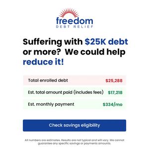 Questo template quadrato per il settore finance è pensato per servizi di debt relief e gestione debiti che vogliono portare l’utente a una verifica di idoneità al risparmio. Il design è molto pulito: sfondo bianco, logo centrato in alto e headline grande “problem-first” che mette subito il dito nella piaga con una soglia chiara (“$25K di debito o più”) e una promessa diretta di riduzione. Al centro, un riquadro a tre righe funziona da prova rapida: debito totale in rosso, importo stimato pagato e rata mensile in verde. La lettura è immediata e rende il beneficio “misurabile” senza dover spiegare troppo. In basso, il pulsante blu molto evidente (“Check savings eligibility”) intercetta chi ha appena visto i numeri e vuole capire se rientra. A livello psicologico lavora su sollievo, chiarezza e risparmio: perfetto per un pubblico problem-aware in fase di considerazione, che cerca certezze prima di compilare una richiesta. È facile da personalizzare cambiando soglia, esempi di rata, claim e colore brand, mantenendo la tabella numerica come elemento chiave.