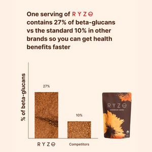 Questo template quadrato è pensato per un brand di bevande funzionali—nello specifico un caffè ai funghi o una miscela “wellness coffee”—e lo posiziona come scelta più efficace rispetto alle alternative. Il design è pulito e quasi editoriale: sfondo crema caldo, tipografia bold e testo allineato a sinistra. Nella parte bassa, un grafico a barre rende immediato il confronto: “RYZE” al 27% di beta‑glucani contro il 10% dei “Competitors”, trasformando una claim nutrizionale in una prova visiva facile da capire. A destra, la foto della busta stand‑up comunica qualità e rafforza la riconoscibilità del prodotto, perfetta per la fase di considerazione. La leva è confronto + curiosità + focus salute: nomina l’attivo, quantifica il vantaggio e suggerisce benefici più rapidi, parlando a utenti già “solution-aware” che stanno valutando cosa comprare. Lo stile minimale e “data-driven” aumenta credibilità e riduce lo scetticismo tipico delle bevande stile integratore. Si personalizza sostituendo la metrica chiave (adattogeni, caffeina, fibre), etichette del grafico e packshot mantenendo la struttura claim+grafico che si legge in pochi secondi nel feed.
