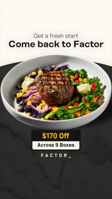 Questo template in formato Story 9:16 è pensato per un servizio di pasti pronti a domicilio e combina due leve potentissime: appetibilità del piatto e risparmio immediato. La parte alta è pulita, su fondo avorio, con tipografia nera molto marcata che lavora come messaggio di “rientro” (“Come back to Factor”), perfetto per riconquistare chi ha già provato il servizio. Al centro domina una bowl fotografata in stile premium: filetto grigliato in primo piano e contorni super colorati (verdure verdi, rossi, gialli e cipolla viola), che comunicano qualità e varietà a colpo d’occhio. In basso, una fascia scura effetto marmo fa da cornice a un badge sconto ben leggibile (“$170 Off”) e a una specifica (“Across 9 Boxes”), chiarendo condizioni e valore dell’offerta senza affollare la creatività. Funziona nel middle‑of‑funnel: il pubblico è già “solution aware” e qui serve una motivazione concreta per scegliere/ritornare. Personalizza sostituendo la foto del piatto, il valore dello sconto e la riga delle condizioni, mantenendo la gerarchia testo‑offerta.