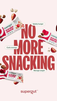 Questo template 9:16 in stile Story è pensato per barrette confezionate “funzionali”, in particolare varianti prebiotiche o digestive. Lo sfondo rosa cipria lascia respirare il layout, mentre la tipografia rossa, enorme e compatta (“NO MORE SNACKING”), crea un messaggio immediato e difficile da ignorare nello scroll. Tre packshot inclinati della barretta incorniciano la headline; fragole e frutta secca sparse aggiungono appetibilità e rendono chiaro il gusto/ingredienti in un colpo d’occhio. A livello strategico lavora in alto funnel (awareness) su trigger di praticità e controllo delle voglie: il problema è esplicito (spuntini continui), la soluzione è semplice (una barretta pronta). I fumetti arrotondati con benefici (“Curb cravings”, “Satisfy hunger”, “Manage weight”) funzionano da “bullet” visivi: si leggono in un attimo e trasformano una promessa generica in vantaggi concreti. È facile adattarlo cambiando claim centrale, ingredienti del gusto e colore della headline in linea con il pack, senza perdere l’impatto e la chiarezza del messaggio.