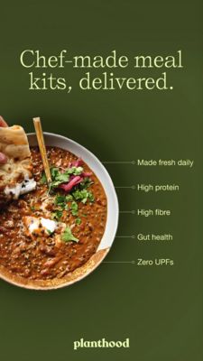Questo layout funziona in top-of-funnel perché unisce un trigger istintivo (foto ravvicinata, calda e “comfort” che stimola la fame) a una serie di motivi razionali che aumentano fiducia. La headline “Chef-made… delivered” concentra in poche parole qualità e comodità: perfetta per un pubblico “unaware” che non sta cercando un meal kit ma può essere incuriosito. L’elenco a destra fa da mini “etichetta”: “fresco ogni giorno” riduce l’ansia da prodotto industriale, “alto contenuto proteico e fibre” aggiunge valore funzionale, mentre “salute intestinale” e “Zero UPF” parlano a chi è sensibile a ingredienti puliti e poco processati. La palette verde oliva e il serif elegante comunicano naturalezza e premium, evitando l’effetto promo aggressiva. Gerarchia chiara e ampio spazio negativo rendono i claim leggibili in pochi secondi e facilmente adattabili per menu e target diversi.