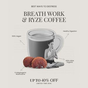 Questo template quadrato promuove un caffè funzionale ai funghi come rituale quotidiano per ritrovare calma e benessere. L’impostazione è pulita e “editoriale”: sfondo beige caldo e morbido, tipografi...