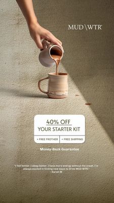 Questo template in formato Story è pensato per un brand di bevande funzionali calde—perfetto per un latte ai funghi o un’alternativa al caffè venduta come starter kit. La scena è un lifestyle shot dall’alto: una mano versa una bevanda color cacao da una piccola brocca in una tazza in ceramica, su una superficie sabbia testurizzata attraversata da un’ombra diagonale. In alto, il wordmark in stile serif dà un’impronta premium e “calma”. Al centro, un riquadro bianco con gerarchia pulita rende l’offerta immediata: “40% OFF” sul kit, con due extra ad alto valore percepito (montalatte gratis e spedizione gratuita). La riga “Money-Back Guarantee” abbassa il rischio, mentre la citazione finale aggiunge riprova sociale credibile senza appesantire. A livello psicologico unisce comfort e desiderio con una prova a basso attrito: ideale per TOF awareness su pubblico “unaware”. Toni caldi, ceramiche e texture comunicano ritualità e qualità. Personalizza brand, sconto e benefit mantenendo il riquadro ad alto contrasto per massimizzare la leggibilità.
