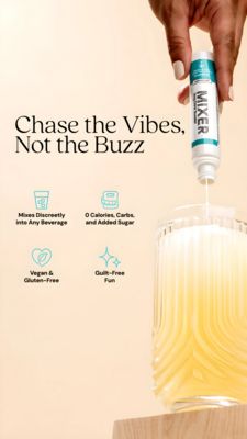 Questo template in formato Story promuove un mixer “da portare sempre con te” che si dosa a gocce e si mescola in qualsiasi bevanda, puntando sul piacere del drink senza l’effetto “buzz”. L’impostazio...
