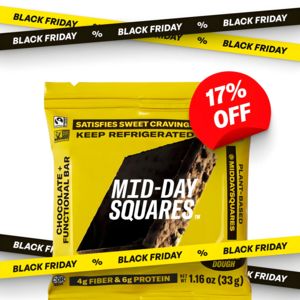 Questo template quadrato per il Black Friday è pensato per snack confezionati al cioccolato e treat “functional”, con una busta gialla in primo piano su sfondo bianco pulito. Le fasce diagonali tipo n...