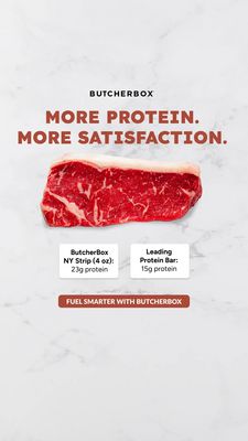 Questa creatività unisce desiderio e prova nutrizionale. La bistecca al centro attiva il craving e comunica “cibo vero”, mentre lo sfondo effetto marmo dà segnali di freschezza e qualità—fondamentali con pubblico freddo in top of funnel. Il claim è orientato al beneficio e si legge in un attimo; le due card di confronto trasformano l’emozione in un motivo razionale, rendendo misurabile la promessa (grammi di proteine per porzione) rispetto a un’alternativa conosciuta. Con utenti “unaware”, il messaggio non richiede familiarità col brand: introduce una metrica semplice e la collega a un risultato percepito (più sazietà). Il design essenziale rispetta le best practice per Stories: gerarchia chiara, alto contrasto e una sola CTA facilmente adattabile (es. “Acquista ora”, “Ordina la box”).