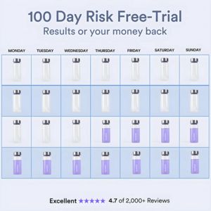 Questo template funziona perché combina due leve decisive nella fase di considerazione: risk reversal e riprova sociale. La promessa “100 Day Risk Free-Trial” insieme al rimborso riduce il rischio percepito per utenti solution-aware che desiderano già un integratore, ma temono di buttare soldi o di non riuscire a essere costanti. La griglia in stile calendario rende la routine concreta e “gestibile”: non è una promessa astratta, ma un percorso visivo che comunica metodo e progressione, best practice fondamentale per protocolli di più settimane. In chiusura, stelle, voto e numero di recensioni offrono validazione esterna immediata, aumentando la fiducia senza ricorrere a claim aggressivi. La palette pulita e quasi “clinica” rafforza l’idea di sicurezza, qualità e affidabilità, facilitando la decisione di iniziare la prova.