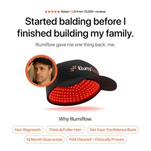 Questo template funziona in fase di considerazione perché ordina le leve persuasive in modo impeccabile: prima l’identificazione emotiva (headline sincera sulla calvizie), poi la conferma immediata (rating 4,8/5 e 75.000+ recensioni), quindi la dimostrazione visiva del prodotto (LED rossi ben in vista) e, infine, prove rapide da leggere (chip con benefici, claim FDA/clinicamente provato e garanzia 12 mesi). È perfetto per un pubblico product-aware: non va convinto di “cos’è”, ma rassicurato su efficacia, sicurezza e valore dell’investimento. Il bianco pulito, il grande respiro grafico e la tipografia bold comunicano affidabilità quasi “medicale”, riducendo la percezione di promessa esagerata tipica delle ads hair-loss. Social proof, autorità e riduzione del rischio convivono in un’unica schermata scansionabile, spingendo al click “scopri di più” senza dover ricorrere a sconti aggressivi.