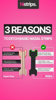 Questo template in formato Story promuove strisce nasali “performance” usando un confronto immediato con le strisce tradizionali. Lo sfondo sfumato rosa/fucsia crea energia da palestra, mentre il tito...