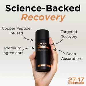 Questo template quadrato è pensato per promuovere un prodotto skincare “recovery” ad applicazione topica (balsamo/roll-on corpo) con un look premium e scientifico. Il design mette al centro il pack nero, tenuto in mano: un dettaglio d’uso reale che aumenta la credibilità senza togliere nitidezza al product shot. Lo sfondo avorio caldo e gli accenti rame (titolo e dettagli del flacone) comunicano qualità, efficacia e posizionamento alto di gamma. Il claim “Science‑Backed Recovery” imposta subito l’angolo di comunicazione, mentre quattro callout con frecce curve—“Copper Peptide Infused”, “Premium Ingredients”, “Targeted Recovery”, “Deep Absorption”—guidano lo sguardo e spiegano i benefici in pochi secondi. È una struttura perfetta per la fase di considerazione: parla a un pubblico già consapevole della soluzione e in fase di confronto, usando specificità (ingredienti e meccanismo) invece di promesse vaghe. Il template si personalizza facilmente sostituendo la foto prodotto, adattando il colore rame al brand e cambiando i callout con i 3–4 plus più forti della linea.