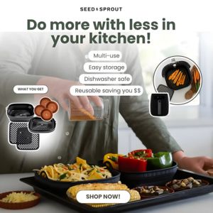 Funziona perché è perfetto per la fase TOF awareness con pubblico “unaware”: non parte dal prodotto, ma dal problema generale (“fare di più con meno”) e lo rende subito concreto con vantaggi semplici. Le pill centrali creano un percorso di lettura rapidissimo e abbassano lo sforzo cognitivo, cosa cruciale su mobile. La foto lifestyle dà contesto (una vera scena in cucina) e aumenta la pertinenza, mentre i ritagli del set rispondono alla domanda più importante per l’acquisto: cosa ricevo esattamente. La frase sul risparmio (“saving you $$”) introduce un trigger razionale che rinforza la praticità e rende la scelta “sensata” oltre che comoda. La gerarchia visiva—headline, benefit, contenuto del kit, CTA—segue le best practice per annunci direct response nel settore home & kitchen.