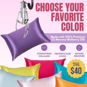 Questo template quadrato promuove federe in seta di gelso premium trasformando la “scelta del colore” nel gancio creativo. Il titolo in maiuscolo, grande e d’impatto (“CHOOSE YOUR FAVORITE COLOR”) su fondo rosa pastello comunica subito personalizzazione e stile, mantenendo però un posizionamento elegante. Il visual principale mostra una federa viola lucida “agganciata” da una pinza metallica: un dettaglio insolito che crea curiosità e rende il prodotto memorabile. In basso, una composizione di federe in più colori spinge all’idea di collezione o acquisto multiplo. La fascia informativa lilla evidenzia la qualità (“100% Premium 22‑Momme Mulberry Silk”), spostando l’attenzione sul materiale, non solo sull’estetica. Tre icone con micro‑claim sintetizzano i benefici (supporto al collagene, meno elettricità statica, migliore ritenzione dell’idratazione), perfetti per awareness su pubblico non ancora consapevole. Il bollino giallo con prezzo barrato e nuovo prezzo attiva il trigger dell’offerta senza appesantire la grafica. È facile personalizzarlo cambiando palette, benefit, prezzo e promozione per saldi, bundle o lancio di nuove tonalità.