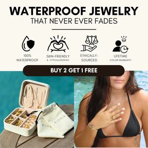 Questa creatività funziona perché parla a un pubblico solution-aware in fase mid‑funnel: l’utente vuole già gioielli che non si rovinino e cerca conferme concrete e un motivo per scegliere subito. Il titolo comunica l’outcome principale (“waterproof” e “non scolorisce”), mentre la riga di icone trasforma le obiezioni tipiche in prove immediate (pelle sensibile, sourcing etico, garanzia colore), abbassando il rischio percepito. Le immagini in piscina sono una dimostrazione d’uso reale, quindi rafforzano la leva “durabilità” senza aggiungere testo. La fascia “Buy 2 Get 1 Free” introduce un trigger di valore che facilita la decisione e aumenta il carrello medio—perfetto per set e regali. Tipografia ad alto contrasto e struttura pulita seguono le best practice: una promessa forte, pochi segnali di fiducia e un’offerta unica chiarissima.