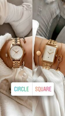 Questo template funziona perché trasforma un brand ancora poco conosciuto in una decisione semplice e immediata. Il confronto split-screen sfrutta il trigger della “scelta”: l’utente si identifica al volo con una forma (tondo più classico vs rettangolare più moderno) e questo aumenta attenzione e micro-impegno. Lo styling lifestyle neutro e morbido, insieme al metallo dorato, comunica qualità premium senza bisogno di claim aggressivi: perfetto per il top of funnel, quando le persone stanno solo esplorando. Il testo ridotto abbassa la fatica cognitiva e il cartiglio in basso agisce da prompt visivo, guidando lo sguardo e invitando all’interazione. A livello di best practice, mostra la scala al polso, valorizza la brillantezza del materiale e presenta due varianti in un solo frame—ideale per capire quale design genera più interesse prima di passare a creatività di considerazione con prezzo e plus di prodotto.