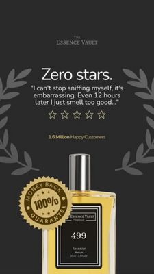 Questo template Story 9:16 è pensato per pubblicità di profumi dal taglio premium, con una riprova sociale costruita in modo “anti‑recensione” che cattura subito l’occhio. Lo sfondo antracite opaco e i rami d’alloro ai lati incorniciano il messaggio come un riconoscimento, dando un’impressione elegante e autorevole. Il titolo “Zero stars.” funziona da gancio: sembra una critica, ma la citazione subito sotto ribalta tutto in un complimento memorabile. La fila di stelline e la dicitura “1.6 Million Happy Customers” consolidano la fiducia in pochi secondi, perfetto per la fase di considerazione (MOF) quando serve una conferma prima dell’acquisto. In basso domina il close‑up della boccetta con liquido ambrato e label nera ad alto contrasto. Il sigillo dorato “Money Back 100% Guarantee” abbatte la paura di sbagliare fragranza. Puoi sostituire frase, numero clienti, nome essenza e claim di durata, mantenendo la stessa struttura lussuosa e credibile.