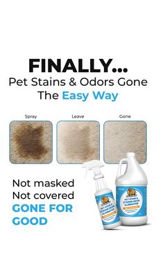 Questo template in formato 9:16 Story è pensato per promuovere uno spray smacchiante e anti-odore per animali, con un messaggio problema‑soluzione immediato e una dimostrazione visiva in 3 step. In alto, il titolo “FINALLY… Pet Stains & Odors Gone The Easy Way” usa un font bold ad alto contrasto su sfondo bianco pulito; il beneficio chiave è evidenziato in azzurro per catturare lo sguardo. Al centro trovi tre riquadri con tappeto etichettati “Spray / Leave / Gone”: una micro-sequenza di prova che comunica efficacia in pochi secondi, senza bisogno di spiegazioni lunghe. In basso, le frasi brevi (“Not masked / Not covered / GONE FOR GOOD”) rafforzano la promessa “non copre, elimina davvero”, mentre le foto prodotto (flacone spray e tanica) aumentano riconoscibilità e intenzione d’acquisto. È perfetto per la fase di considerazione: chi guarda conosce già il problema e cerca una soluzione affidabile. Personalizzalo cambiando le foto delle macchie (pipì, fango, vomito), adattando l’azzurro al colore del brand e sostituendo la claim finale con superfici compatibili o “senza profumo”.