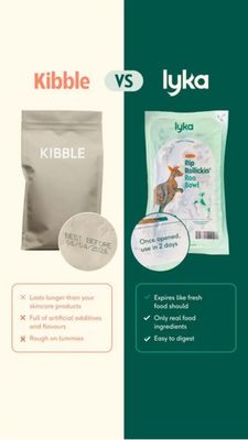 Questo template Story 9:16 è pensato per brand pet food che vogliono mettere a confronto il fresco “real food” con il classico kibble, in modo immediato e molto leggibile. Il layout è diviso in due co...