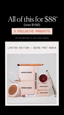 Questo template funziona perché parla a un pubblico product-aware nella fase BOF: chi lo vede non ha bisogno di spiegazioni, ma di un motivo concreto per acquistare ora. Il valore del bundle è chiarissimo (“tutto questo a $88” + “prima $132”): il prezzo di riferimento crea ancoraggio e fa percepire il risparmio come reale e immediato. L’etichetta “prodotti esclusivi” aumenta la desiderabilità, mentre “limited edition” e “sta finendo di nuovo” attivano la scarsità e riducono il rinvio tipico dei drop. A livello visivo, il nero e la tipografia serif comunicano premium, ma il riquadro con flat-lay pulito elimina dubbi mostrando esattamente cosa contiene il kit: best practice fondamentale quando la composizione del set guida la decisione d’acquisto.