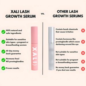 Questo template quadrato è pensato per promuovere un siero crescita ciglia con un confronto “vs.” che accompagna l’utente nella fase di considerazione. La creatività è divisa in due colonne: a sinistra il prodotto protagonista (“XALI Lash Growth Serum”), a destra “Other Lash Growth Serums”, separati da una linea verticale sottile. Titoli in maiuscolo, font bold e frasi brevi rendono la lettura rapidissima; le spunte verdi contrapposte alle X rosse creano un contrasto immediato e guidano l’occhio lungo l’elenco. Al centro, due packshot essenziali (tubo rosa per il brand, tubo argento per l’alternativa) rafforzano l’idea di comparazione senza usare foto di modelli. La copy strategy punta su autorevolezza, segnali di fiducia e risk reversal: ingredienti sicuri, “hormone free”, risultati comprovati e garanzia 60 giorni. Funziona per chi desidera ciglia più lunghe ma sta valutando soprattutto sicurezza, tollerabilità e garanzie. Personalizza nome, colori e punti chiave con i tuoi veri differenziatori e claim conformi.