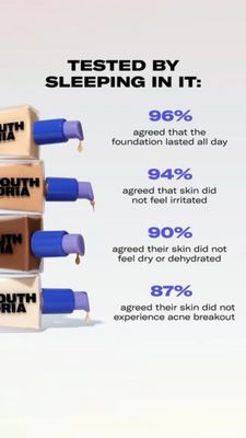 Questo layout lavora benissimo nel funnel di considerazione perché trasforma le paure tipiche legate al fondotinta in rassicurazioni misurabili. L’headline crea subito un contesto “estremo” e memorabile (“dormirci con”), poi le percentuali grandi in blu funzionano da riprova sociale immediata: durata, delicatezza e comfort diventano messaggi verificabili. Le righe successive rispondono a obiezioni precise—irritazioni, secchezza, brufoli—abbassando il rischio percepito per utenti già product aware che stanno confrontando alternative simili. Il visual pulito e lo sfondo neutro comunicano affidabilità, mentre la colonna di flaconi in diverse tonalità suggerisce scelta e inclusività. È una creatività “mobile-first”: hook istantaneo, lettura veloce e benefit guidati dai dati, perfetti da sostituire con risultati reali di test o survey del brand.