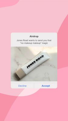 Questo template 9:16 in stile Story promuove un balsamo viso colorato o un prodotto complexion minimal, usando un pop‑up “Airdrop” effetto iPhone per bloccare lo scroll con curiosità immediata. Lo sfondo rosa con forme morbide mantiene il look leggero e ultra beauty, mentre la card arrotondata in primo piano concentra testo e foto prodotto. Il tubetto su superficie marmo comunica pulizia, premium e vibe “skin-like” senza bisogno di promesse pesanti. La tipografia riprende l’interfaccia di sistema: titolo deciso, riga breve di messaggio e due pulsanti (“Decline/Accept”), trasformando la call to action in una scelta giocosa e rapidissima. A livello psicologico unisce novità (UI inattesa), aspirazione (no‑makeup makeup) e curiosità (“se accetto cosa succede?”), perfetto per TOF e pubblico non ancora consapevole. Il brand può sostituire immagine, nome del mittente e frase “magic” con un beneficio chiave come glow, effetto blur o SPF, mantenendo il realismo dell’interfaccia che rende l’idea credibile.