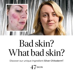 Questo template skincare quadrato punta tutto su un prima/dopo ravvicinato del viso per raccontare in un attimo un miglioramento visibile su acne, rossori e imperfezioni. La composizione mette l’immagine “problema” in un riquadro in alto a sinistra e la foto del volto sereno a destra: il contrasto costruisce una narrativa di trasformazione chiara, senza bisogno di troppo testo. Lo sfondo argentato effetto lamé dà un look “clinico ma premium”, mentre l’headline grande in serif (“Bad skin? What bad skin?”) è provocatoria e curiosa: perfetta per fermare lo scroll nella fase di awareness. La fascia bianca inferiore è pulita e ordinata: titolo, riga di scoperta sull’ingrediente e area centrale per brand/claim. Funziona con pubblico “unaware” perché prima cattura con la prova visiva, poi invita a scoprire. Personalizzalo sostituendo il riquadro con il tuo caso (acne, couperose, texture), riscrivendo la riga beneficio/ingrediente e inserendo prodotto o logo nel footer mantenendo la tipografia ad alto contrasto.