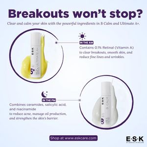 Questo template ad quadrato è pensato per promuovere una routine anti-imperfezioni in due step, con un siero “AM” a base di retinoide e un trattamento “PM” orientato a barriera e sebo. Il design è pul...