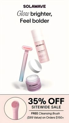 Questo visual lavora su aspirazione e convenienza in un contesto TOF. L’headline centrata sul beneficio (“Glow brighter, Feel bolder”) parla a un pubblico solution-aware: sa già che esistono tool e routine per aumentare la luminosità e cerca un motivo per scegliere un brand. Lo spazio bianco e le tinte cipria comunicano qualità e “skincare premium”, mentre i packshot sospesi rendono immediatamente concreta la routine (device + siero + crema) senza dover spiegare troppo. Il blocco “35% OFF” crea un punto di ancoraggio visivo e un motivo istantaneo per cliccare; la soglia con omaggio aggiunge valore percepito e spinge l’importo medio d’ordine. È un esempio efficace di gerarchia chiara, messaggio unico e offerta in due livelli (sconto + bonus) ideale per trasformare curiosità in acquisto.